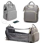 多機能 ナイロン キャンバス マザーズリュック グレー マザーズバッグ 大容量 折り畳み ベビーベッド