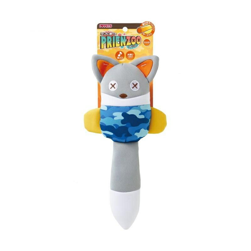 丈夫な生地で壊れにくく、噛むと音が鳴る綿なしのぬいぐるみです。
